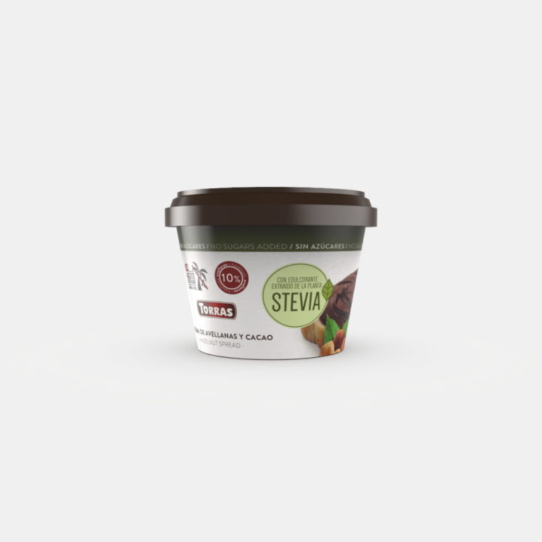 Crema de cacao sin azúcar y avellanas. Edulcorado con Stevia.