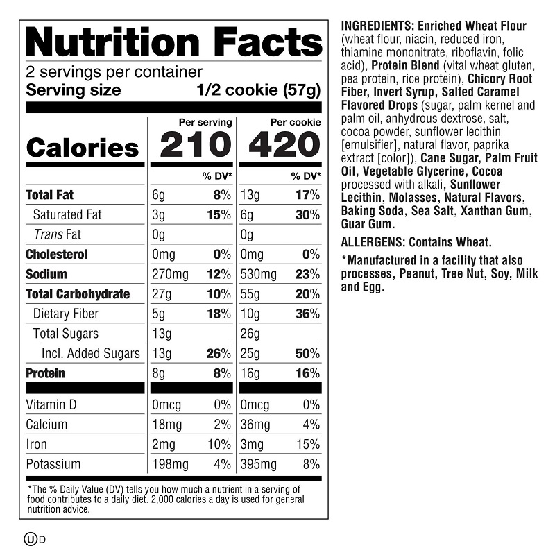 Galleta proteica The Complete Cookie sabor a caramelo salado.