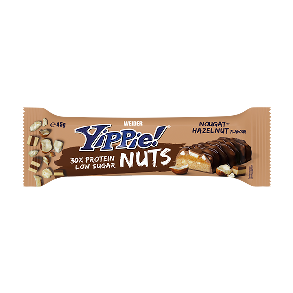 Las nuevas barritas Yippie Nuts están formadas por una irresistible base de proteína suave, cubierta de una capa cremosa de caramelo y trocitos de frutos secos reales, a su vez cubiertos con el mejor chocolate con leche. Suena bien, ¿verdad?